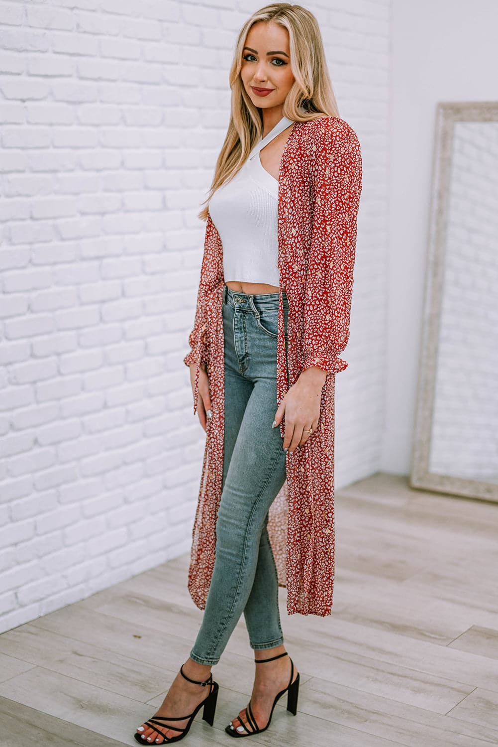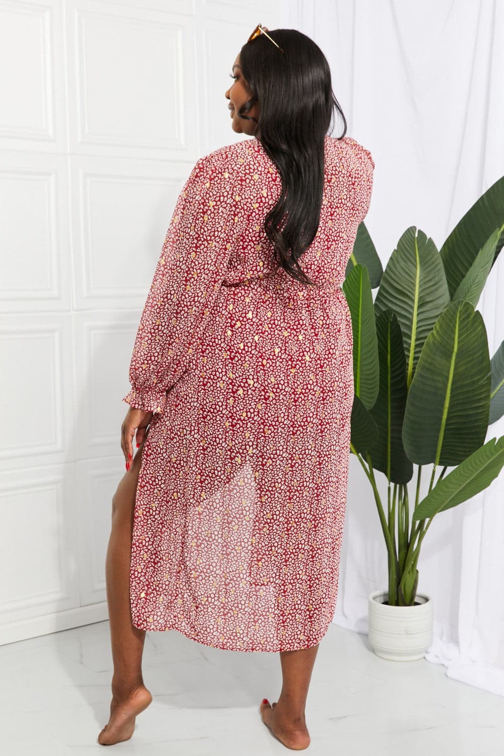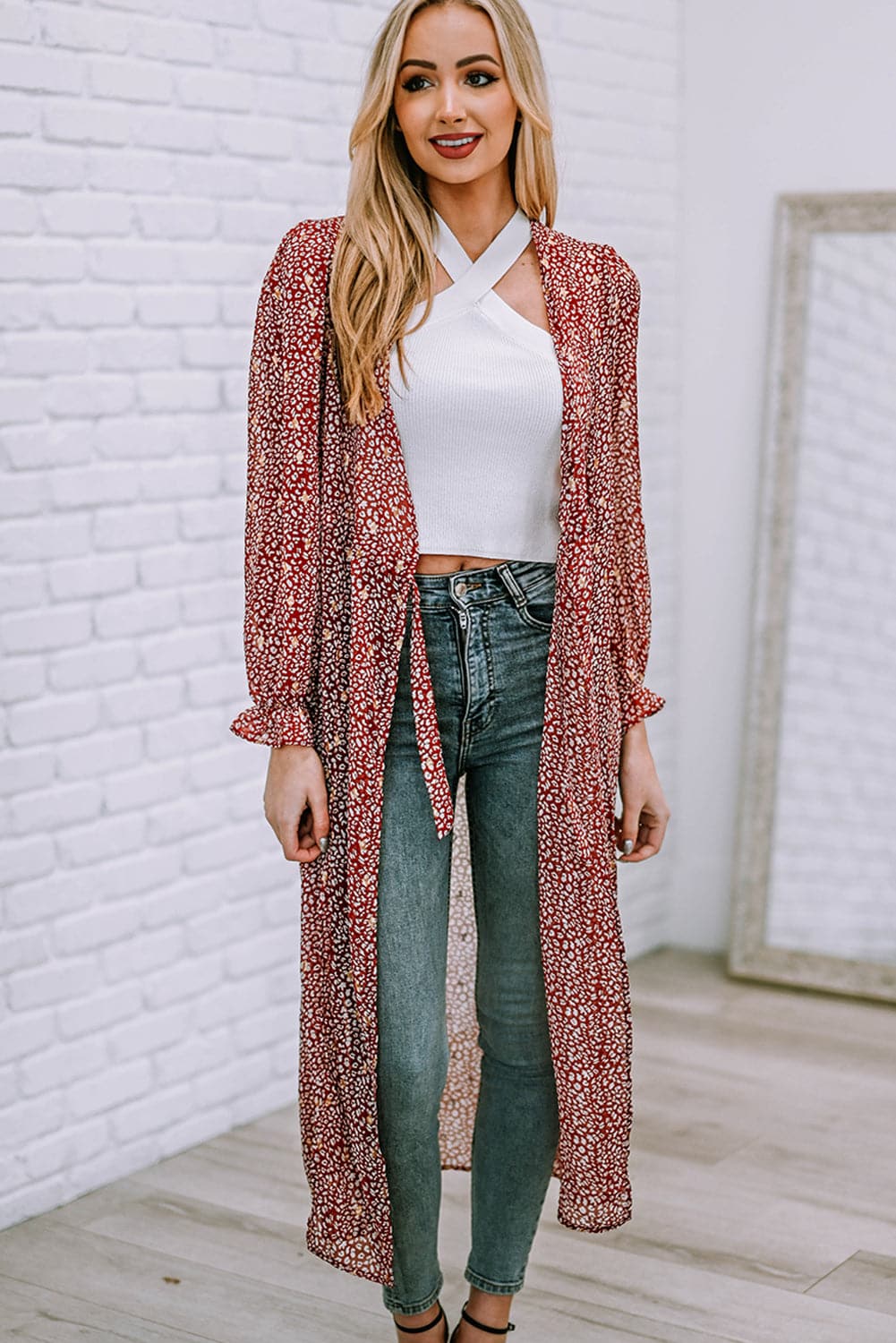 Leopard Tie Waist Flounce Sleeve Cover Up