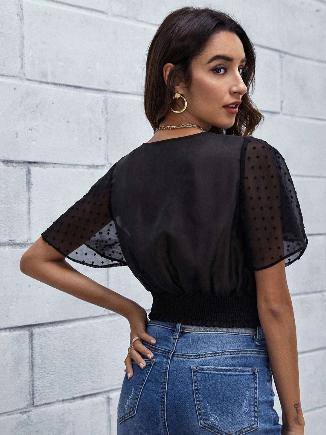 Swiss Dot Surplice Neck Cropped Top
