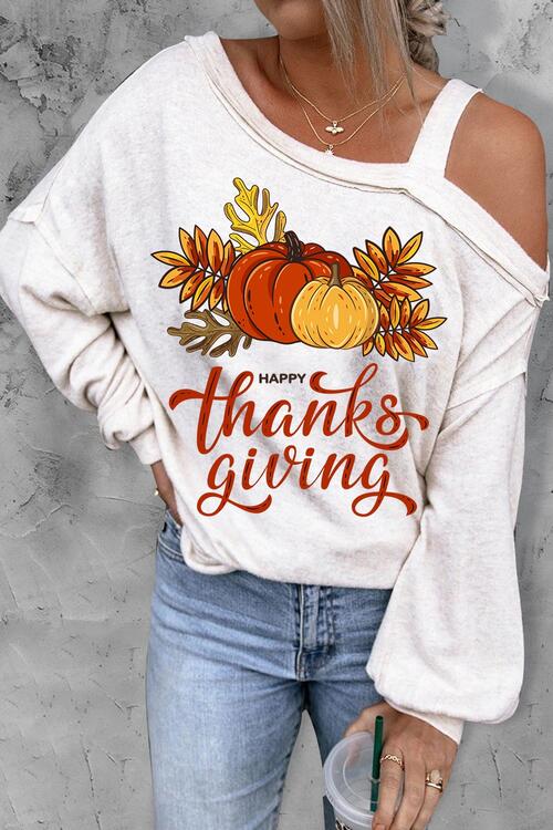THANKSGIVING Asymmetrical Neck Long Sleeve Top